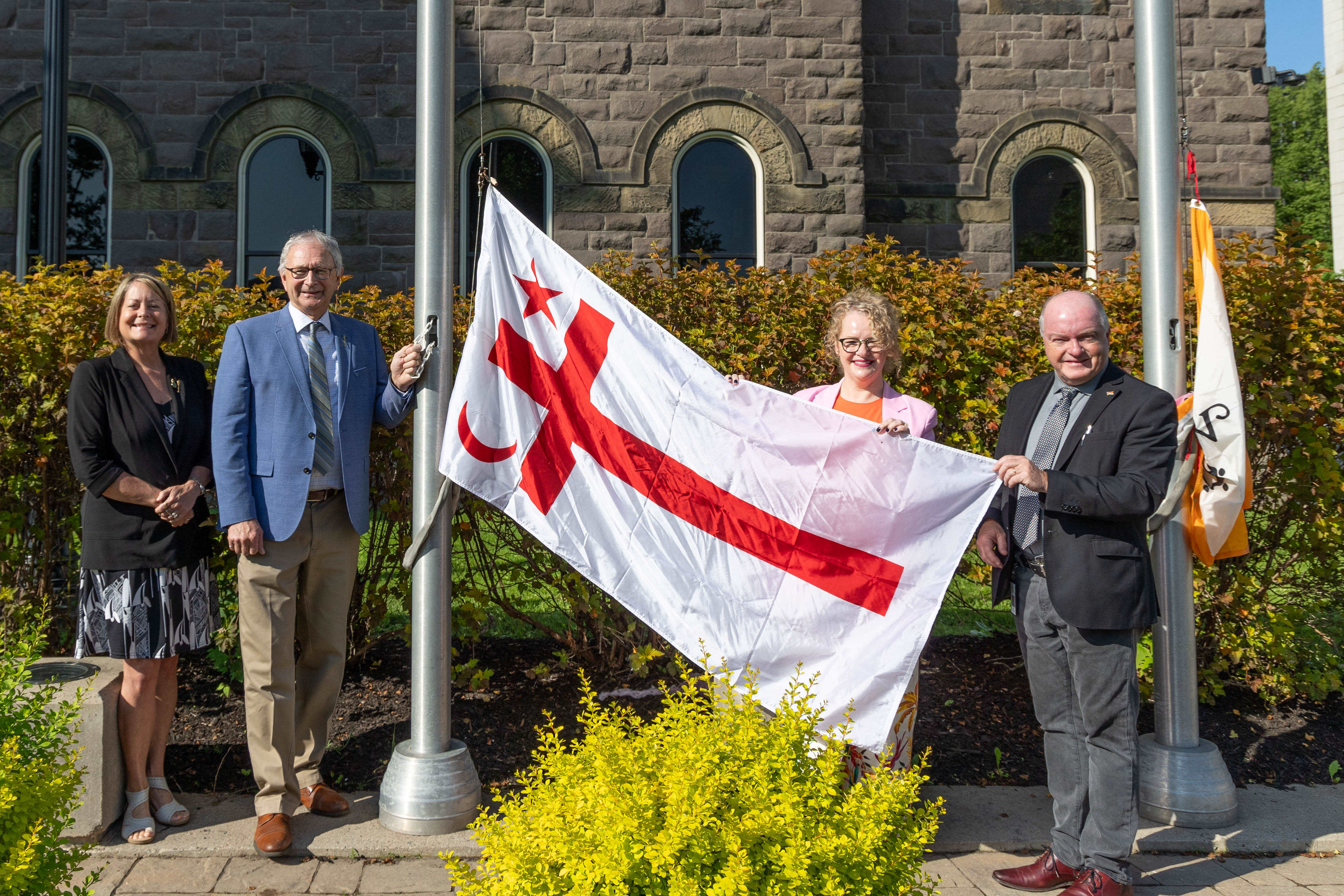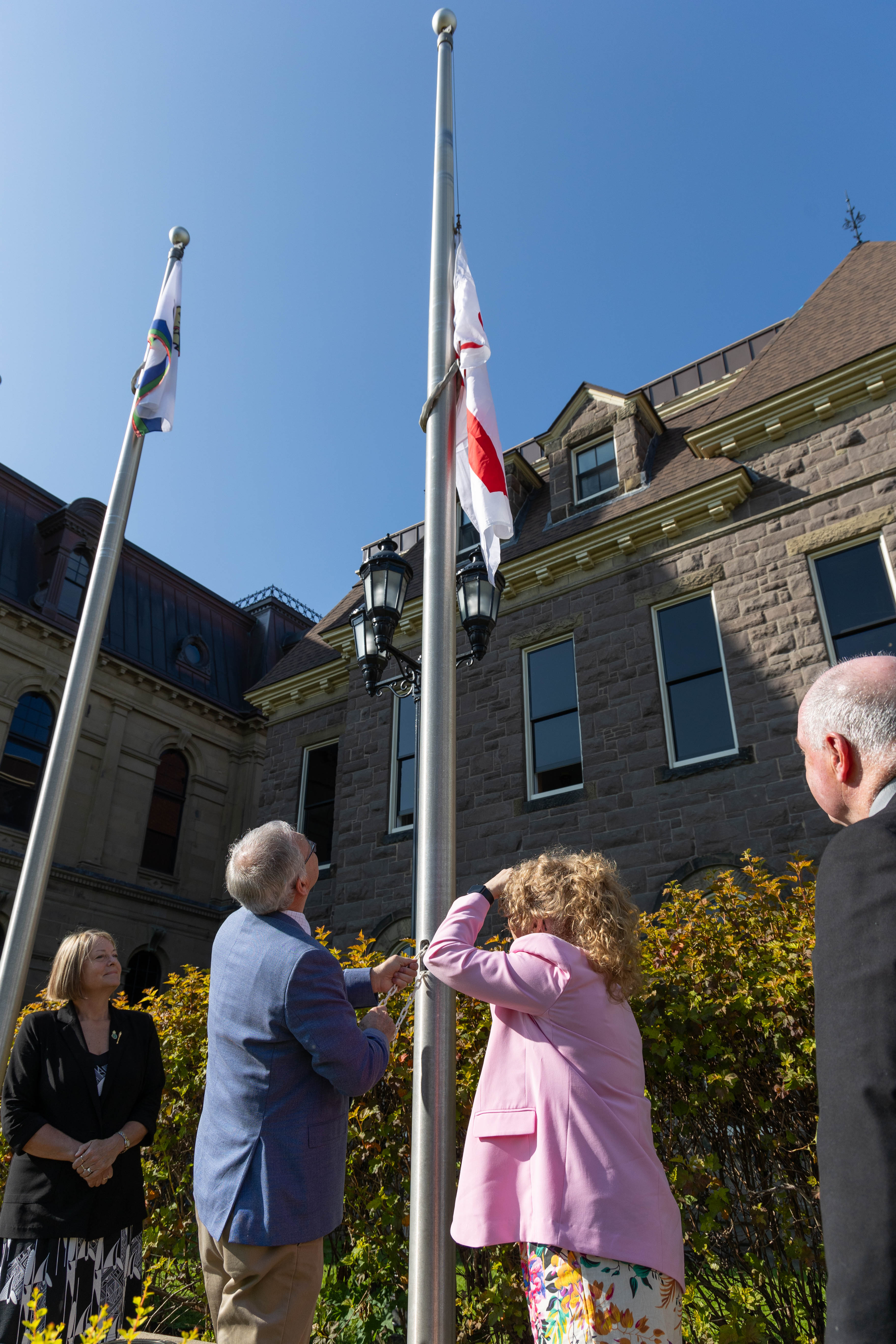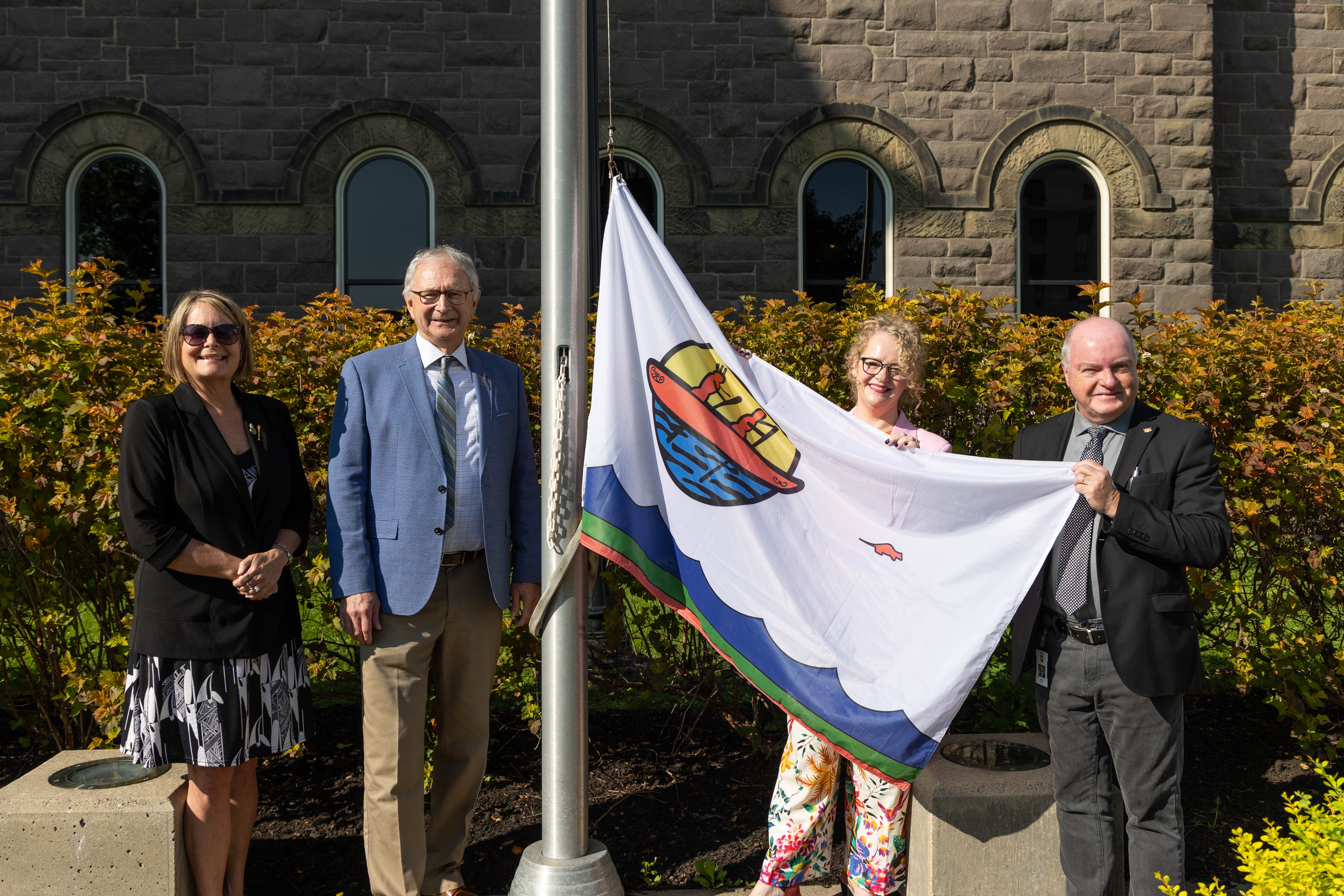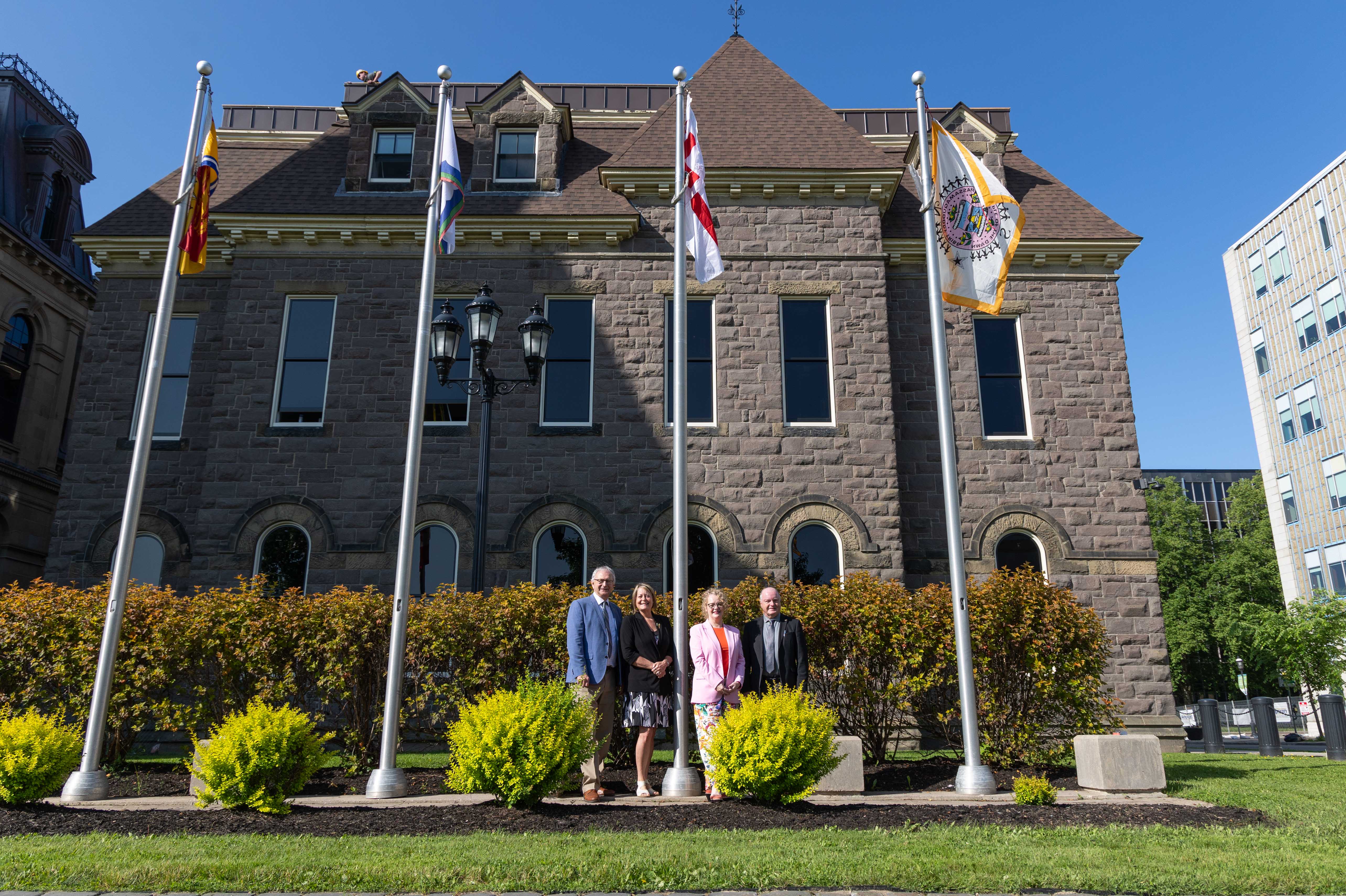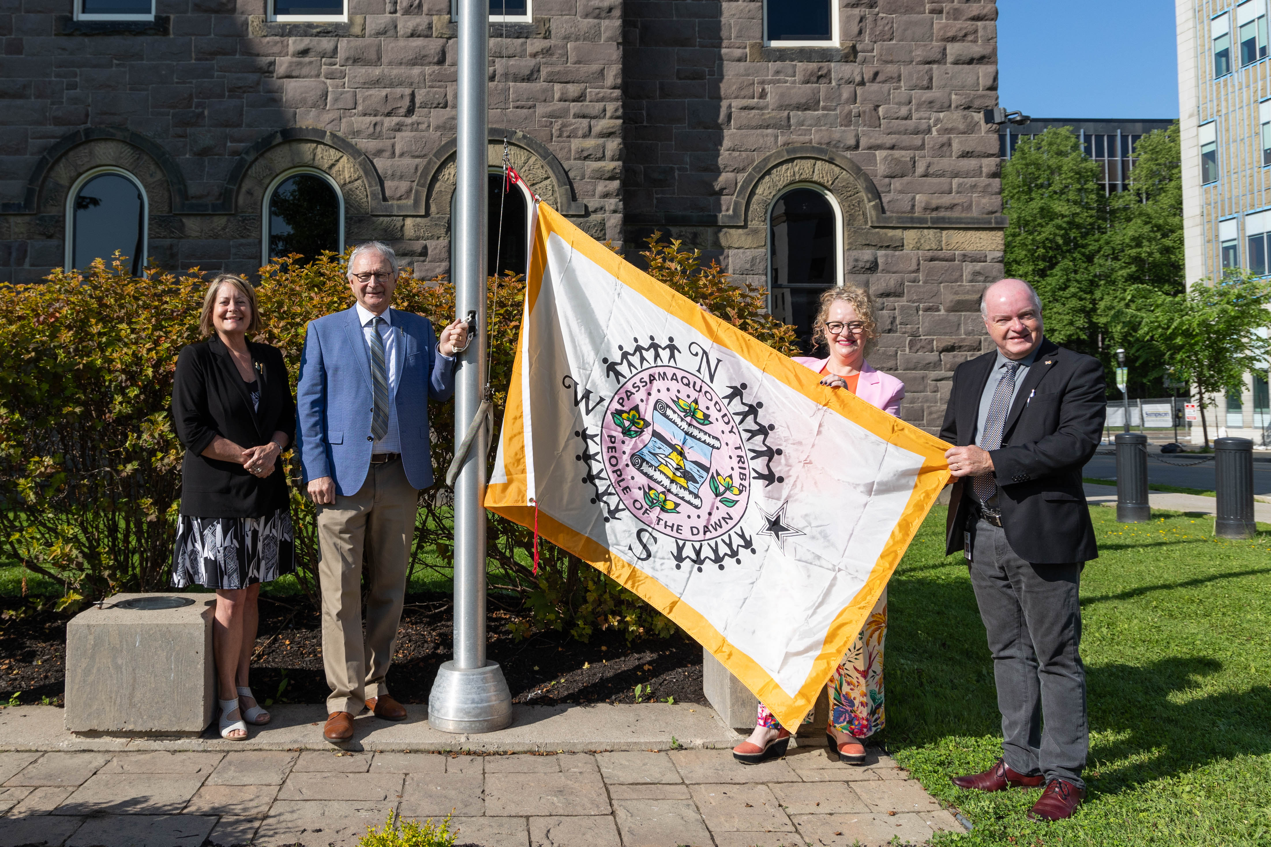 In honour of National Indigenous Peoples Day, a flag raising was held at the legislative assembly on the morning of June 21. Several staff members from the Department of Aboriginal Affairs were on hand to watch as Premier Blaine Higgs, Minister of Aboriginal Affairs Arlene Dunn, Minister of Health Bruce Fitch, and Oromocto-Lincoln-Fredericton MLA Mary Wilson helped raise the Wolastoqey, Mi’gmaq and Peskotomuhkati flags.