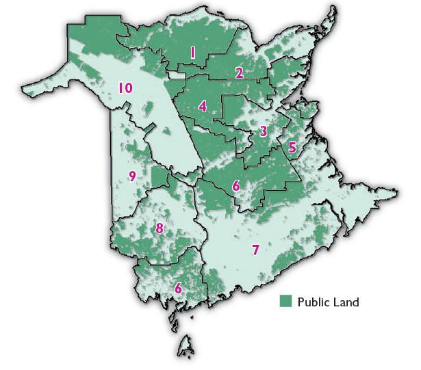The Crown land silviculture program is administered by the Department of Natural Resources and Energy Development (DNRED). Crown timber licensees, under the authority of the Crown Lands and Forests Act, have been assigned the responsibility of implementing silviculture at levels as specified in each License Forest Management Plan, necessary to maintain sustainable harvest levels of softwood and hardwood on each Crown Timber Licence.