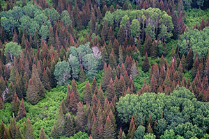 The Forest Health Section currently monitors for two insects using pheromone traps. Pheromones are the chemical signal insects created by the insect for communication. Pheromones are used for numerous types of communication. In some species they are used to call other insects together (e.g. aggregation), in some they are used to repel others (e.g. anti-aggregation), in most insects these chemical signals are very specific and unique. Scientists have been able to identify and reproduce these chemicals in many species, allowing us to monitor species presence/absences and relative abundance in pest management. For both