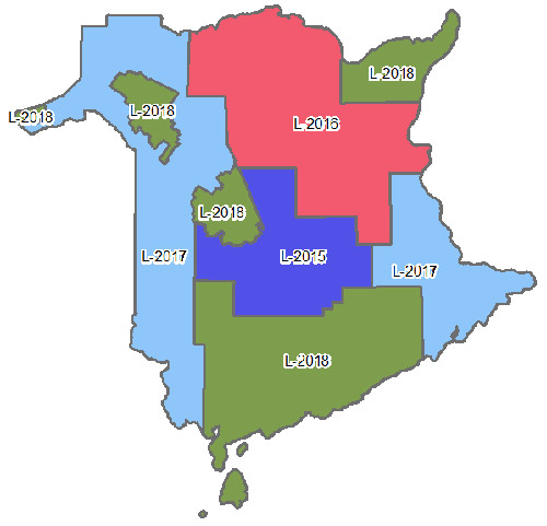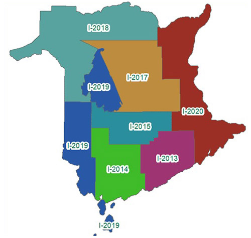 The Renewable Resource Inventory Section of the Forest Planning and Stewardship Branch is responsible for generating an updated Forest (FO), Wetland (WL), and Non-forest (NF) layer annually. Photo interpretation of digital aerial photography (DAP) and the Canopy Height Model (CHM) derived from LiDAR are used in combination to produce these layers. The Forest layer provided here is for New Brunswick Crown Land only. Wetlands (WL) and Non-forest (NF) are displayed for the entire Province. It should be noted that these layers should not be confused with regulatory layers provided by other Departments, specifically, Wetland layer provided by ELG.