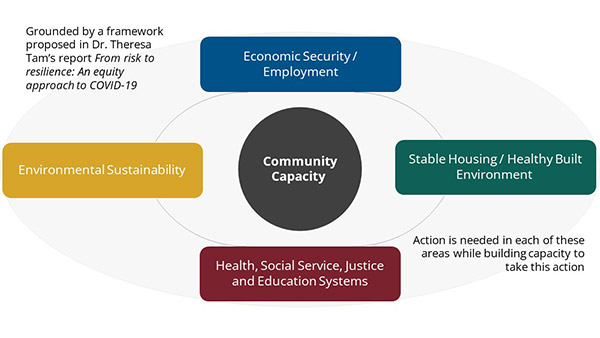 A whole of society approach is required to recover from the extensive impact of events such as the COVID-19 pandemic. The Community Capacity and Resiliency initiative is focused on taking learning from the pandemic, ice storms, floods, and collaborating with New Brunswick communities to align efforts, build capacity and help communities to become more resilient to future crises and disasters.