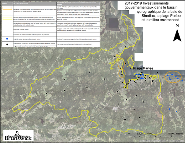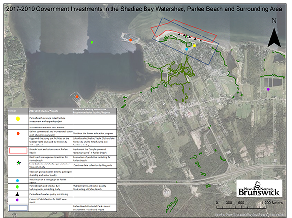 Cela permettra de faire l’inventaire de tous les tuyaux d’évacuation d’effluents dans la baie de Shediac et de faire de la surveillance pendant et après les chutes de pluie afin de mieux comprendre l’impact du ruissellement des eaux pluviales sur la qualité de l’eau dans la baie de Shediac.